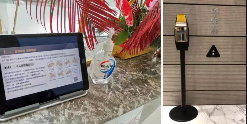 勤洗手,病毒去。广州IFC和越秀金融大厦在主要出入口、前台以及电梯厅配备免洗消毒洗手液,以备客户不时之需。