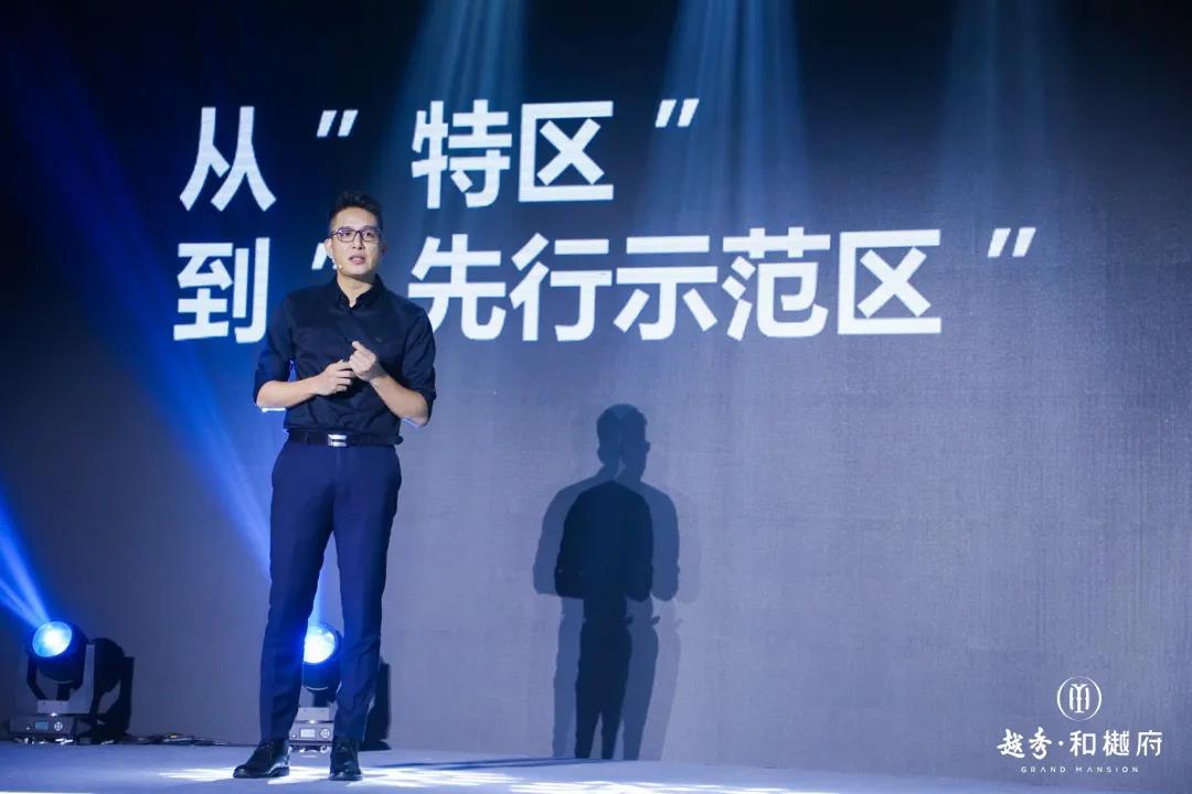 随后,越秀地产产品中心副总经理李恩先生分享了和樾府产品的诞生之路《在最快的城市谈谈慢》。越秀·和樾府,作为越秀地产首进深圳的匠心著作,深刻洞悉城市日益增长的高端生活需求,择址前海尖岗山低密生态豪宅区,以每天多出3小时“回归自然、回归生活、回归家庭”的27H住区,利用高低错落的建筑铺排、约250米超长水轴景观等产品设计,诠释“27H生活绿洲”的居住哲学。