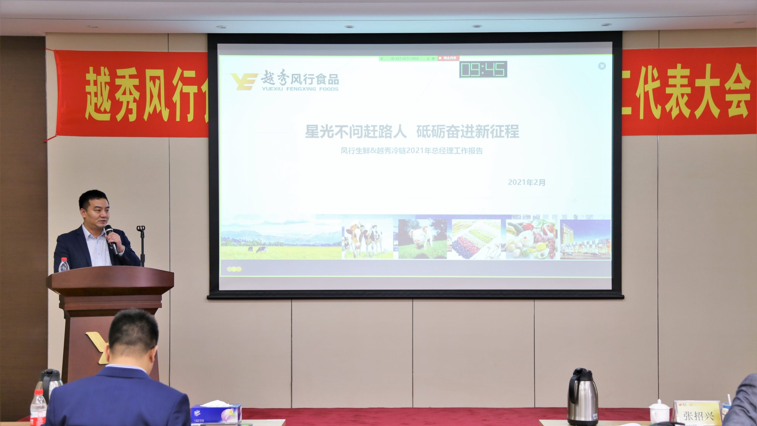 真实干,以“三牛”精神开好局》的讲话,副董事长、总经理韦黎明作《深化战略谋新局 强化能力绘新篇》的2021年度总经理工作报告。会议由越秀风行食品党委副书记常芳主持。