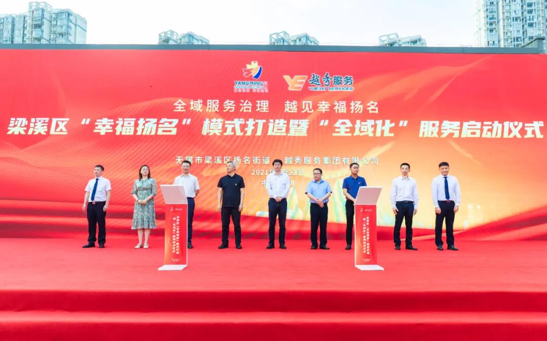 2021年6月23日,无锡市梁溪区扬名街道(以下称“扬名街道”)与越秀服务集团有限公司(以下称“越秀服务”)在扬名街道幸福嘉里隆重举行了梁溪区“幸福扬名”模式打造暨“全域化服务”启动仪式,双方将围绕