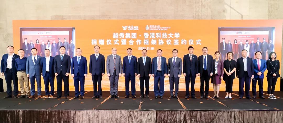 11月18日,越秀集团与香港科技大学捐赠仪式暨合作框架协议签约仪式在广州以“云签约”形式举行。香港中联办、香港特区政府、广州市、南沙区、越秀集团、香港科技大学有关领导和嘉宾出席活动。活动现场,越秀集团与香港科技大学先后签署了捐赠协议和合作框架协议。