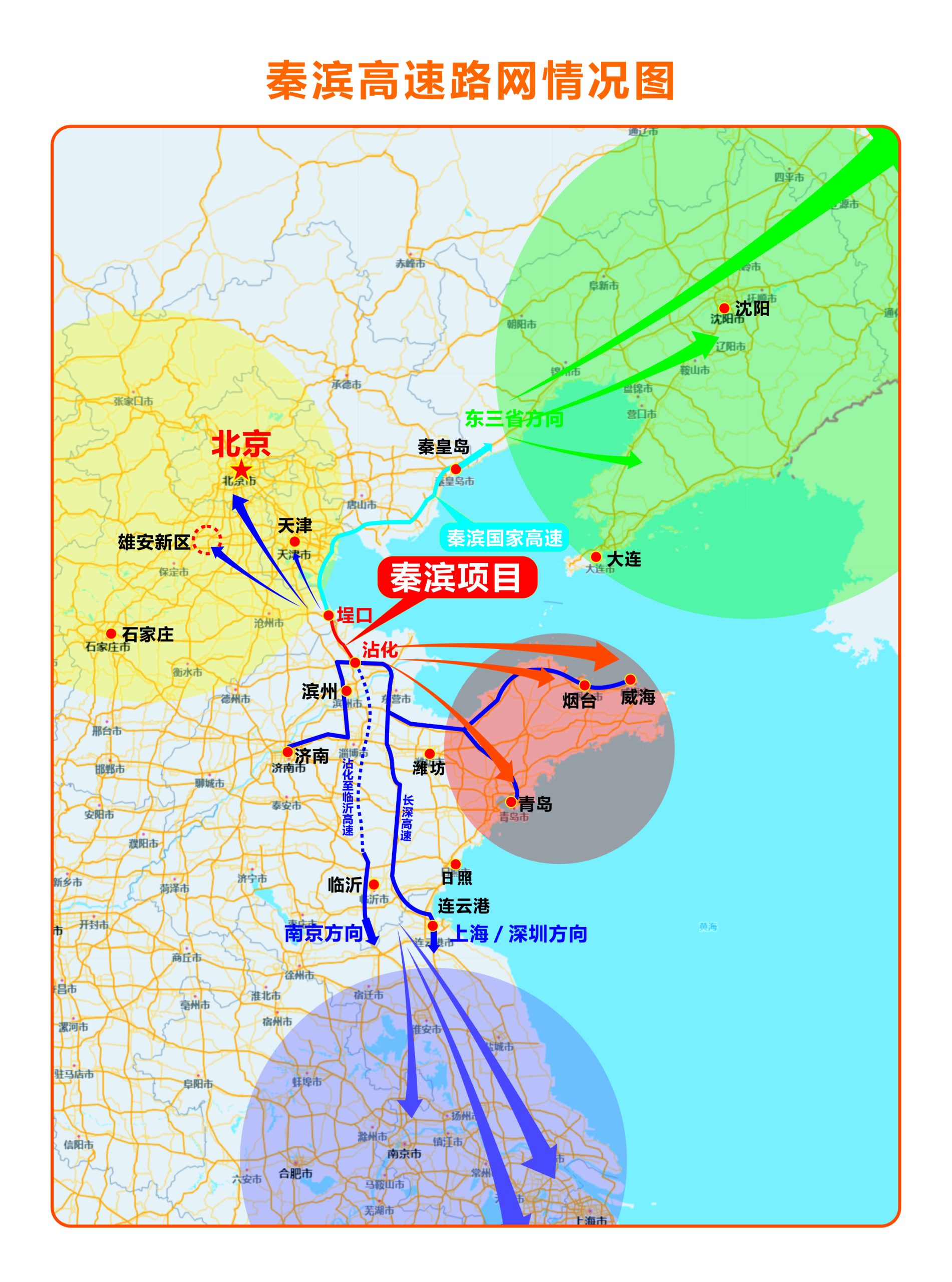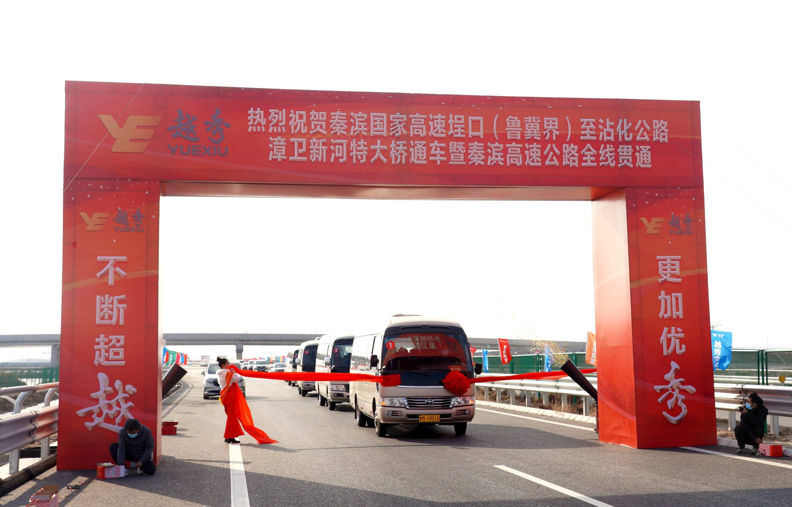 秦滨高速山东省埕口(鲁冀界)至沾化公路是京哈高速公路联络线的重要组成部分,是山东高速公路网规划“九纵五横一环七连”中的纵四,也是山东省政府重点招商引资项目之一。在省委省政府、市委市政府的大力支持下,一期工程埕口(鲁冀界)至沾化互通已于2020年11月16日建成通车。二期工程漳卫新河特大桥作为连接山东、河北两地秦滨高速的咽喉枢纽,由山东省、河北省两省共建,也已于2020年8月开工建设,项目全长9.527km,其中山东段长7.67km,河北段长1.857km。